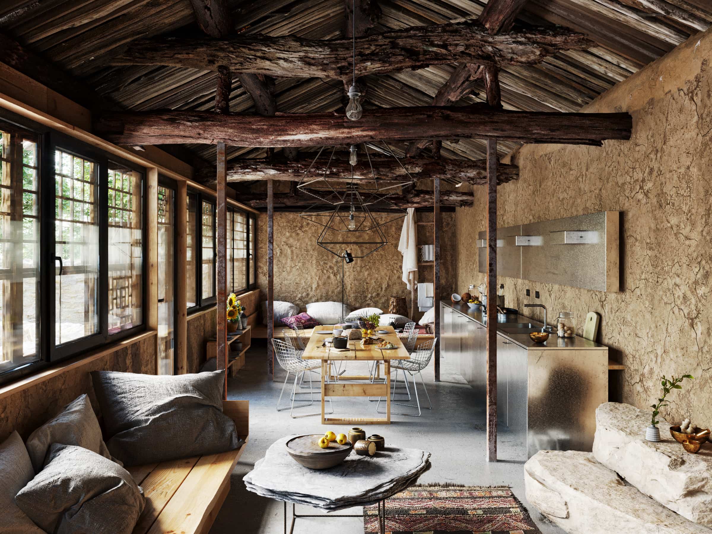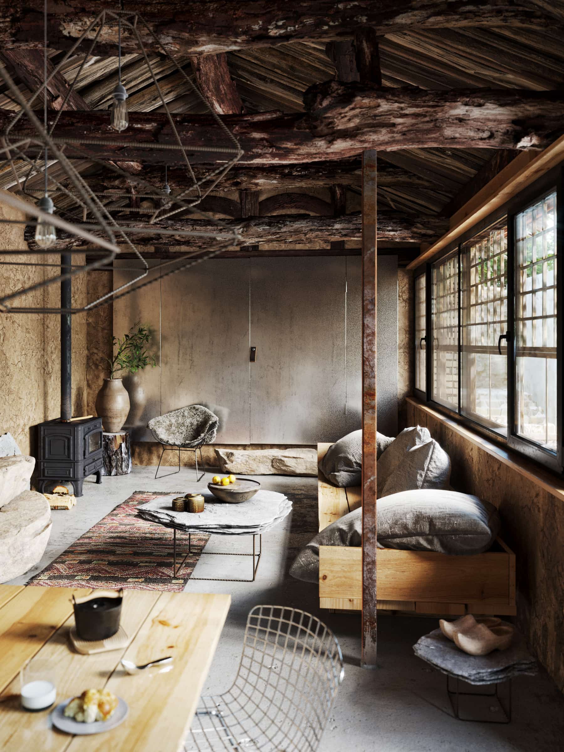 I'm presenting next personal visualizations inspired by Studio Cottageproject. This time I wanted to create some cozy interior with many dirt and old surfaces. And that was my big challenge in this project. I used many composite and blend layers with grunge and dirty textures. I'm suprised that only Corona Sun and Sky can give such nice effect :)