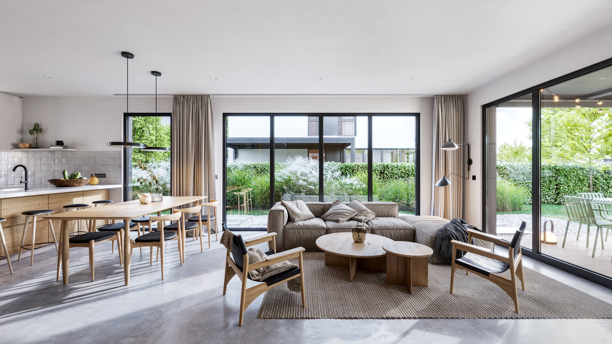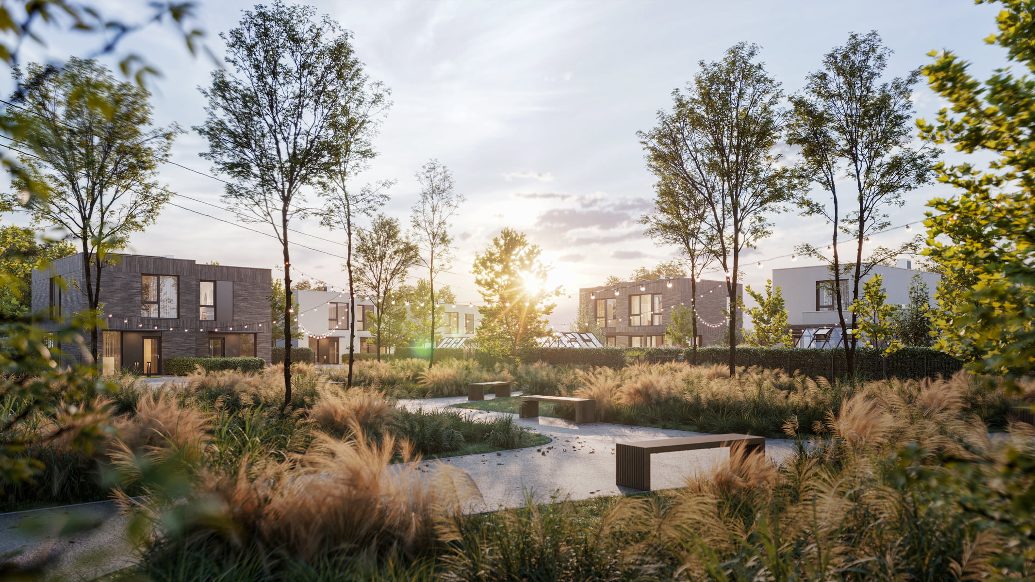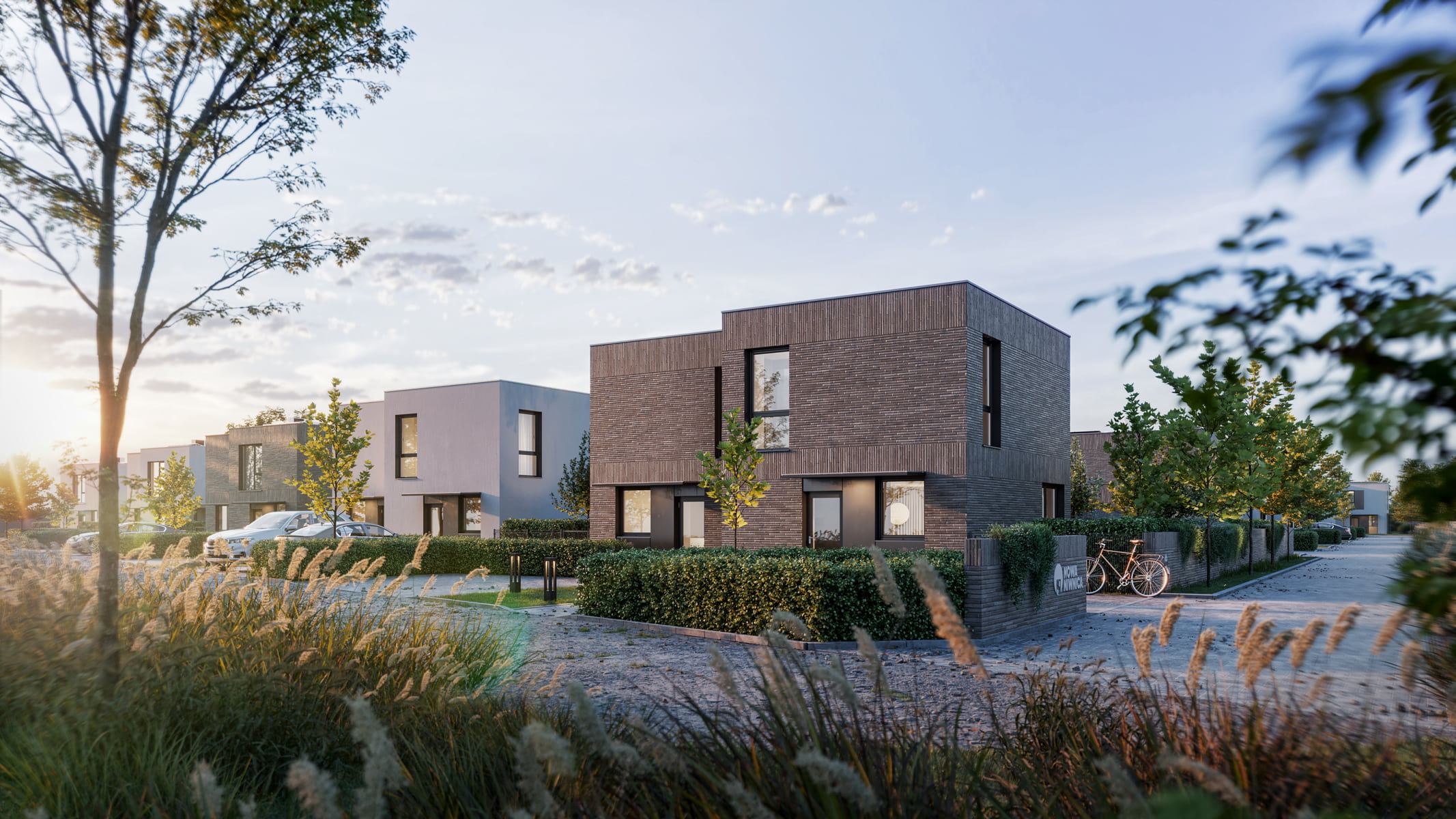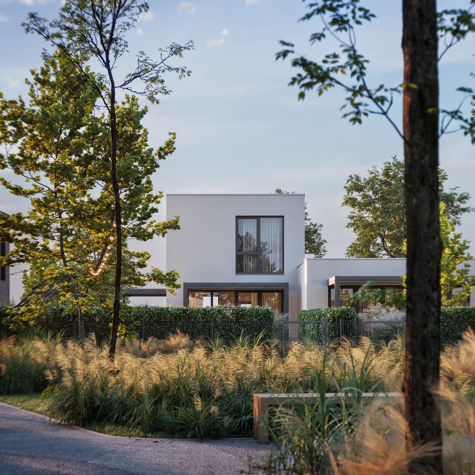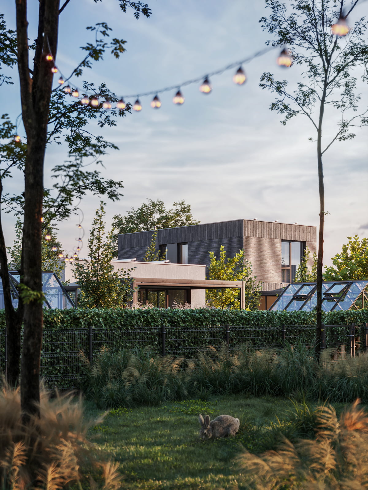 Nowa Niwnica is a modern single-family residential development in Niwnica, near Nysa, Poland — a place I’m personally connected to. This project presents a series of architectural visualizations created to reflect its minimalist architecture, the contrast between elegant gray brick and white plaster and its calm, green surroundings. Private gardens with small greenhouses, as well as pergolas, offer a peaceful retreat from the urban bustle, creating a sense of idyllic charm.